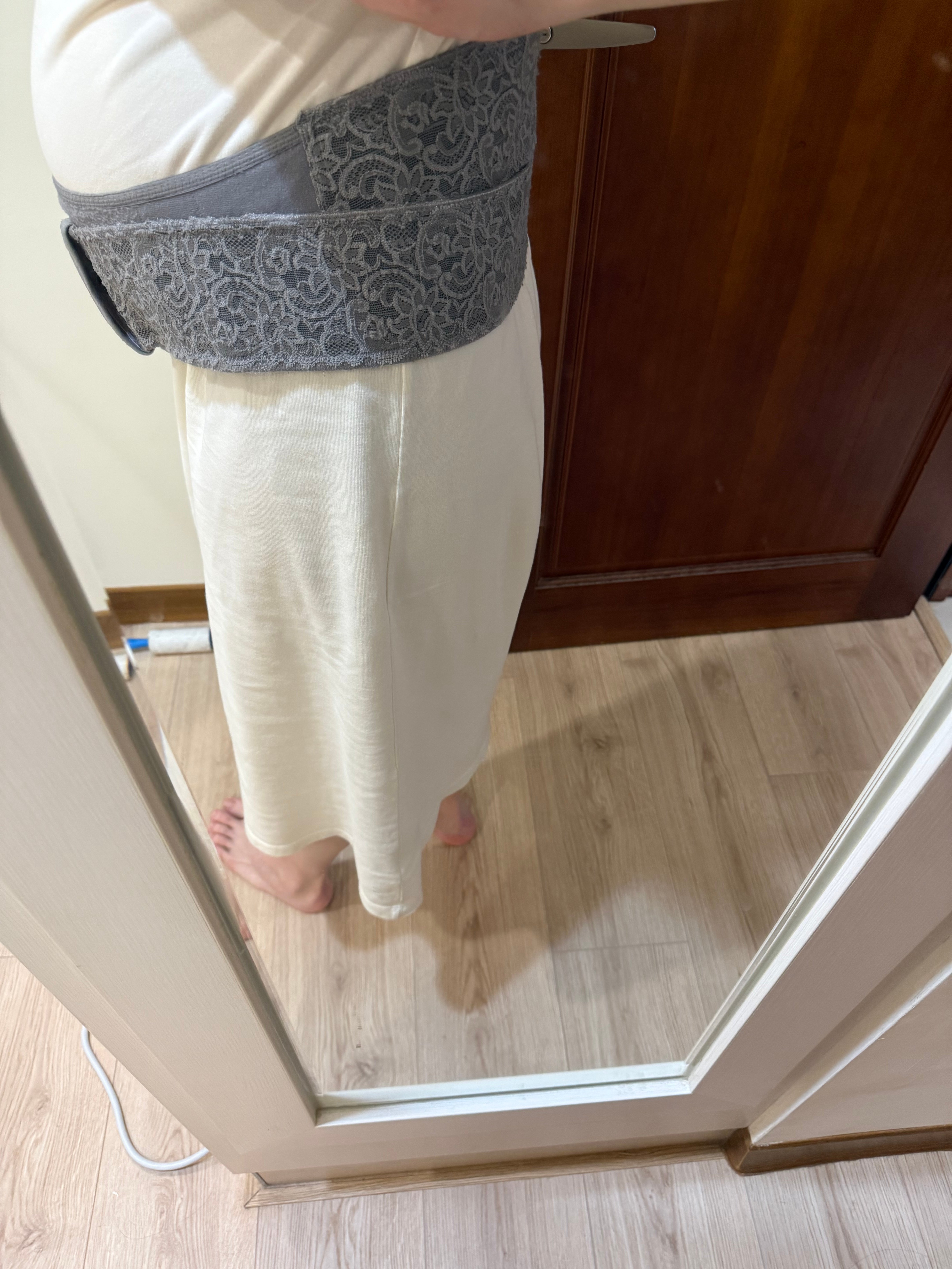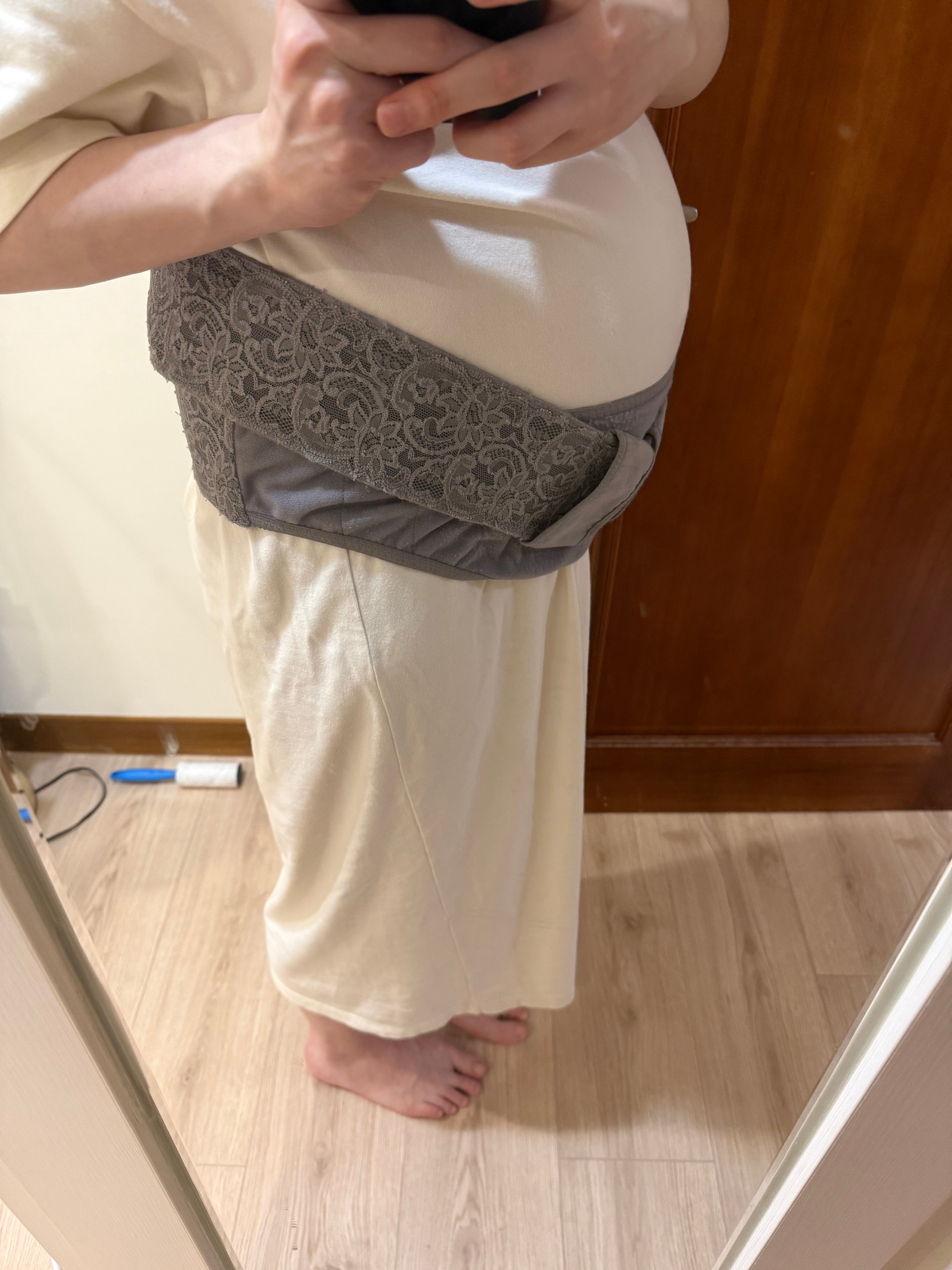 - 順應身形的弧形剪裁:它的下緣有一個自然的弧度,能溫柔地托住下腹部,分擔腰部的壓力。最讓我驚豔的是它的包覆感很適中,不會有明顯的壓迫感。即使在孕後期或是剛吃完飯肚子比較緊繃時,依然能維持良好的支撐力,而不會勒得不舒服,這一點在長時間穿戴時非常有感。